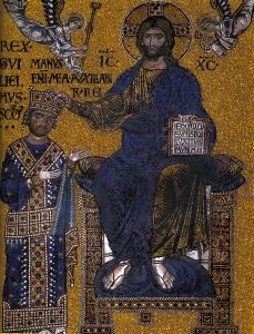 Mosaikk fra katedralen i Monreale: William II krones av Kristus. Kun Kristus er ‘Konge til evig tid’; enhver jordisk makt er delegert og midlertid – det er dét jordens mektige lett glemmer.
